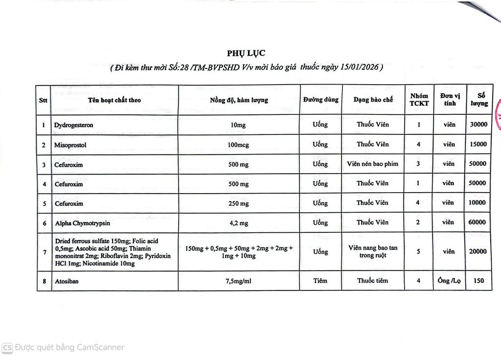 Thư mời báo giá gói mua sắm thuốc cho nhà thuốc bệnh viện năm 2026-2027
